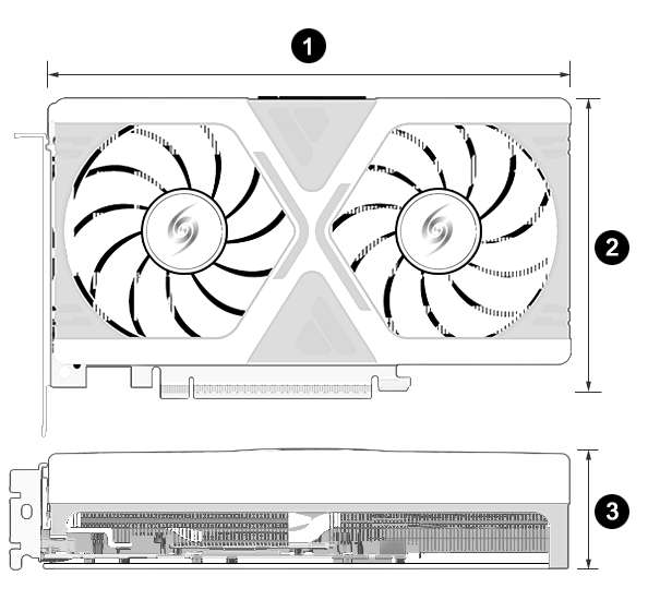 1 209 mm (length) 2 120.5 mm (height) 3 47.4 mm (thickness) ![]() |