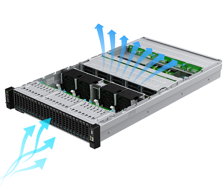 High efficiency cooling system-4x Heavy duty fans with Optimal Fan Speed Control, for less power and ensure a stable environment and availability 24/7.